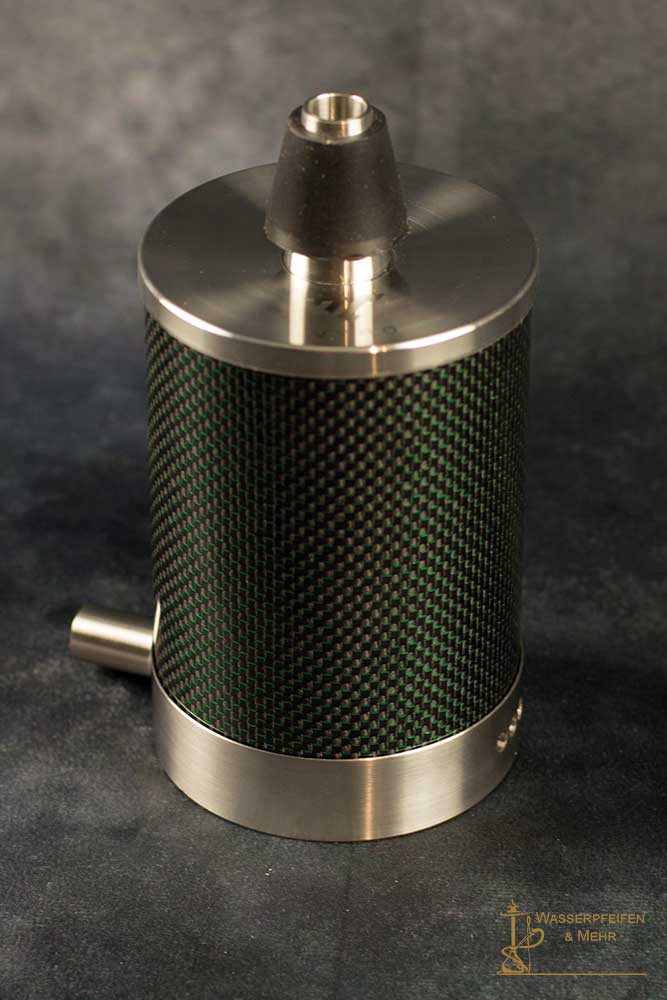AEON VYRO ONE Green EDELSTAHL SHISHA, auch unterwegs nicht auf Luxus beim Shisha Rauchen verzichten! Die VYRO - ONE ist ideale Outdoor / Travel Shisha für unterwegs und wird aus V2A Edelstahl und Carbon produziert.
