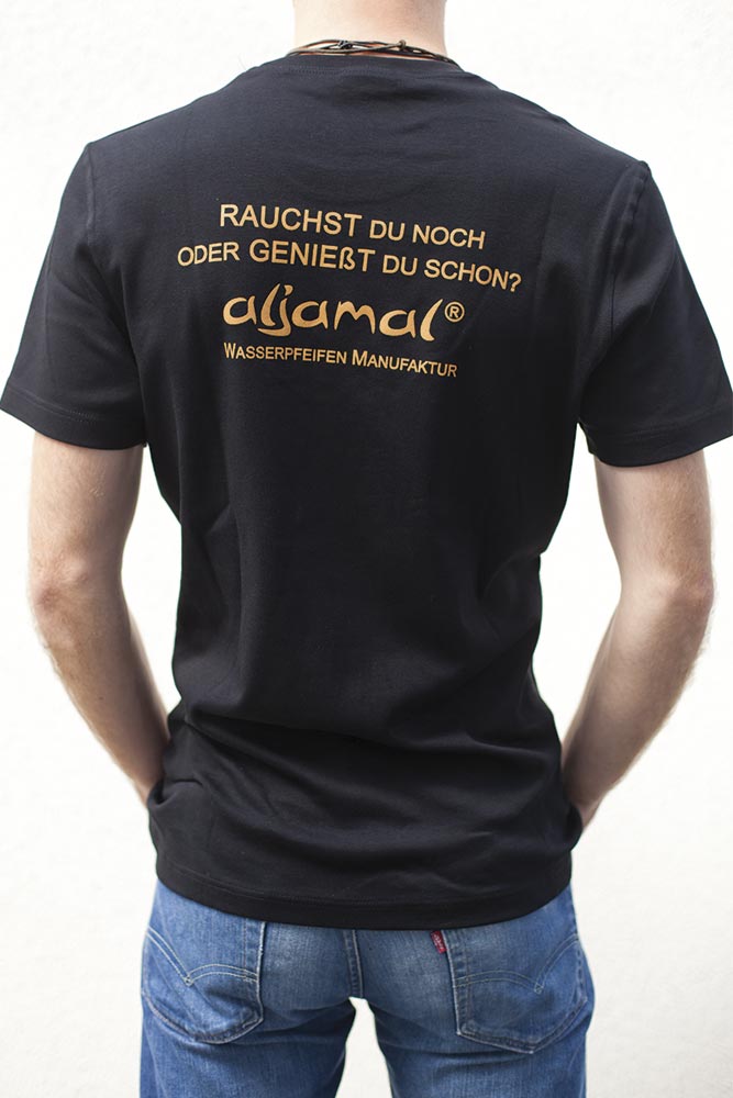 Das aljamal Herren T-Shirt, ein Muss für jeden eingefleischten aljamal Fan, ideal für Shishatreffen oder einfach so mal zwischendurch, ist das aljamal Shirt ein richtig schickes Accessoire.