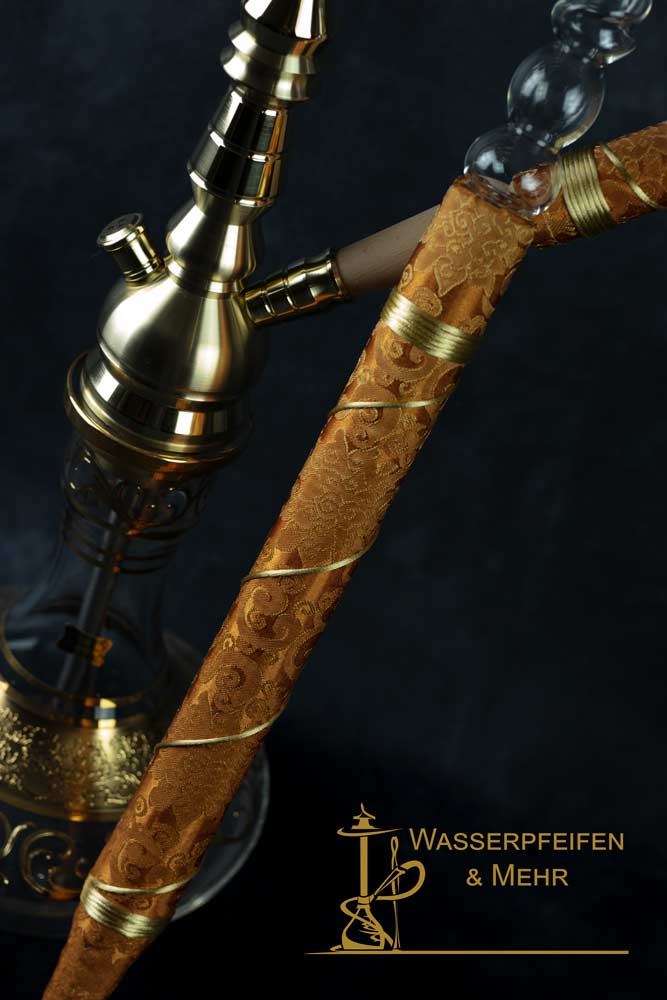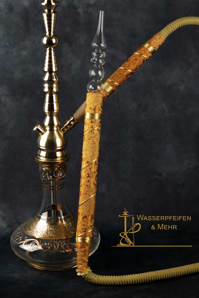 aljamal Kaffeehausschlauch / Ziegenlederschlauch New Amber, aufwendig hergestellt mit hochwertigem Stoff und aljamal Glasmundstück!