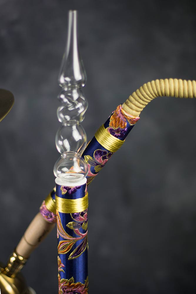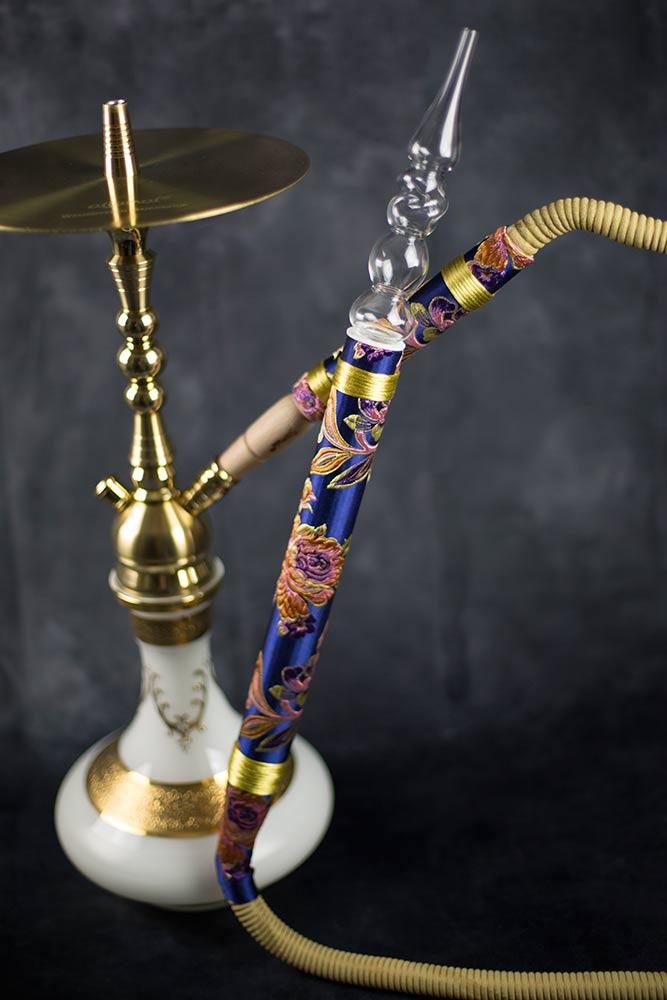 aljamal Ziegenlederschlauch Blue Flowers, aufgrund der Farbkombination passt dieser Ziegenlederschlauch nicht nur zu einer bestimmten Bowl, bei jeder Kombination kommt dieses Stück unheimlich gut zur Geltung.