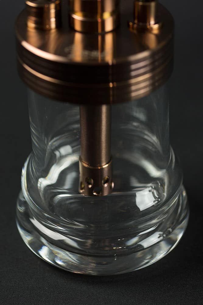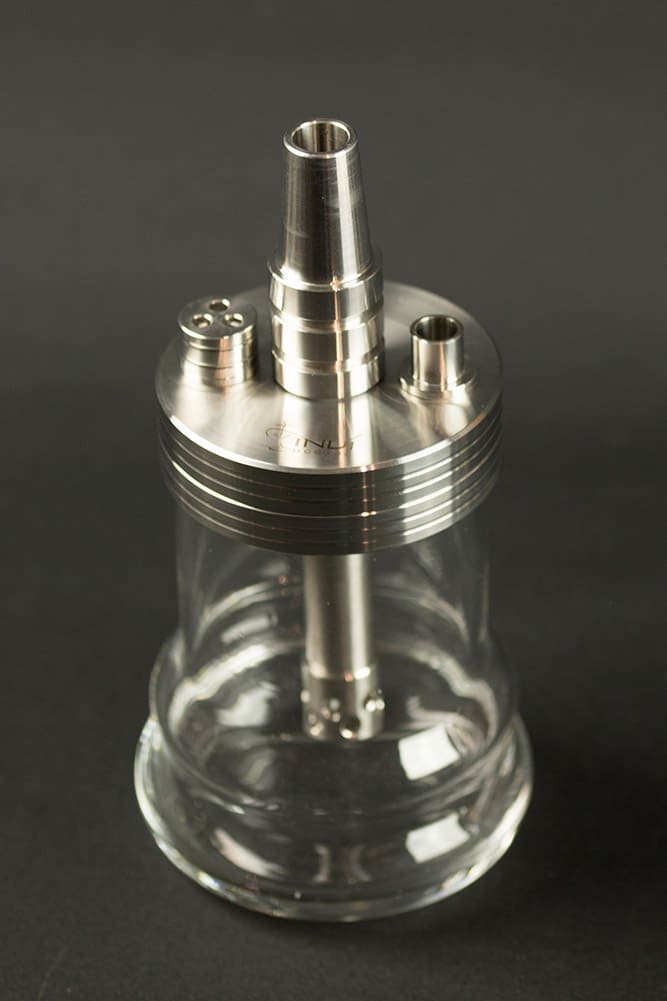 SICHERE CONNECTION - Glas und Rauchbase der INVI Nano lassen sich mit einem Gewinde ordentlich verschrauben. Somit zieht die Shisha keine Nebenluft und die Rauchbase kann nicht versehentlich heruntergerissen werden.
