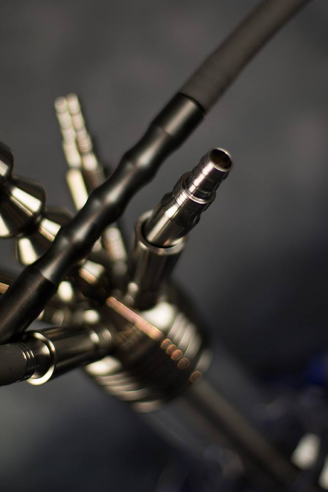 Die Invi Tessaract ist, bis auf das Glas natürlich, komplett aus Edelstahl gefertigt, was für eine hochwertige Optik sorgt. Die Non Sticky Technology (NST), die beim Schlauchanschluss zum Einsatz kommt ermöglicht ein einfaches an und abstecken des Silikonschlauches.