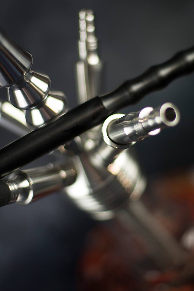 Die Invi Tessaract ist, bis auf das Glas natürlich, komplett aus Edelstahl gefertigt, was für eine hochwertige Optik sorgt. Die Non Sticky Technology (NST), die beim Schlauchanschluss zum Einsatz kommt ermöglicht ein einfaches an und abstecken des Silikonschlauches.