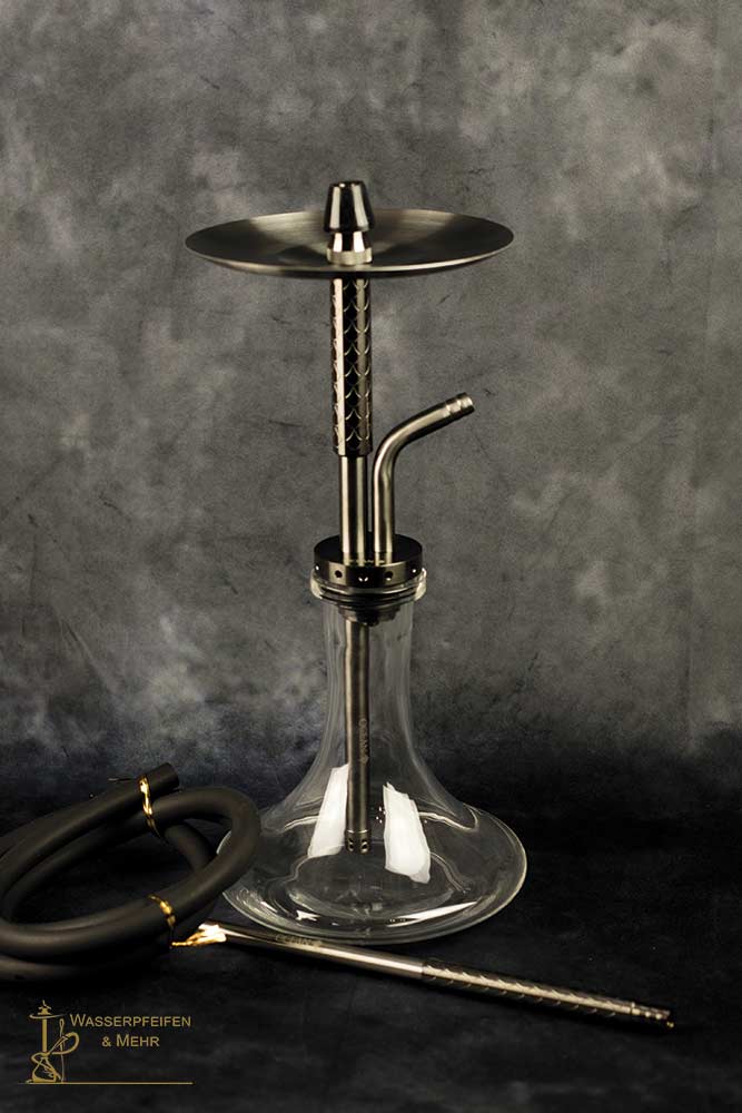 Ocean Hookah Cane "S" Small Black Clear, again with a funny blow-out system above the base. Small mobile hookah (height 45cm) ideal to take with you or also as a table hookah. High-quality workmanship, with a lot of accessories included and the whole thing also at a very good price.