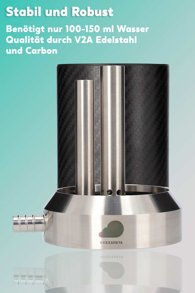 The Sheeshaya Hazard comes in a handy carrying case with hose and Sheeshaya Carbon mouthpiece, everything complete, just head and coal (not included) on it - go smoking. The Sheeshaya is extremely robust, a fall from a height of one meter leaves a maximum of a few scratches.